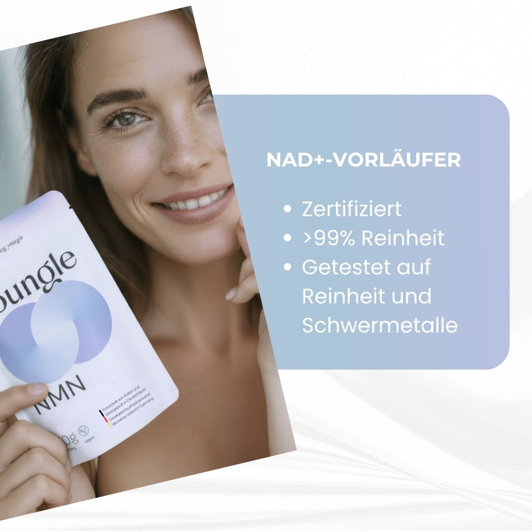 Unser NMN (Nicotinamid-Mononukleotid) unterstützt deinen Körper dabei, den NAD⁺-Spiegel natürlich zu erhöhen – für mehr Energie, bessere Konzentration und schnellere Regeneration.